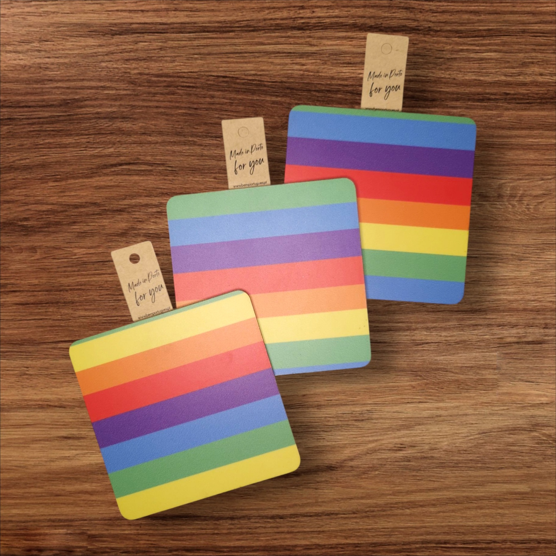 Base de copos colorida, feita em madeira MDF reciclada. Com um design vibrante que celebra alegria, diversidade e criatividade.
