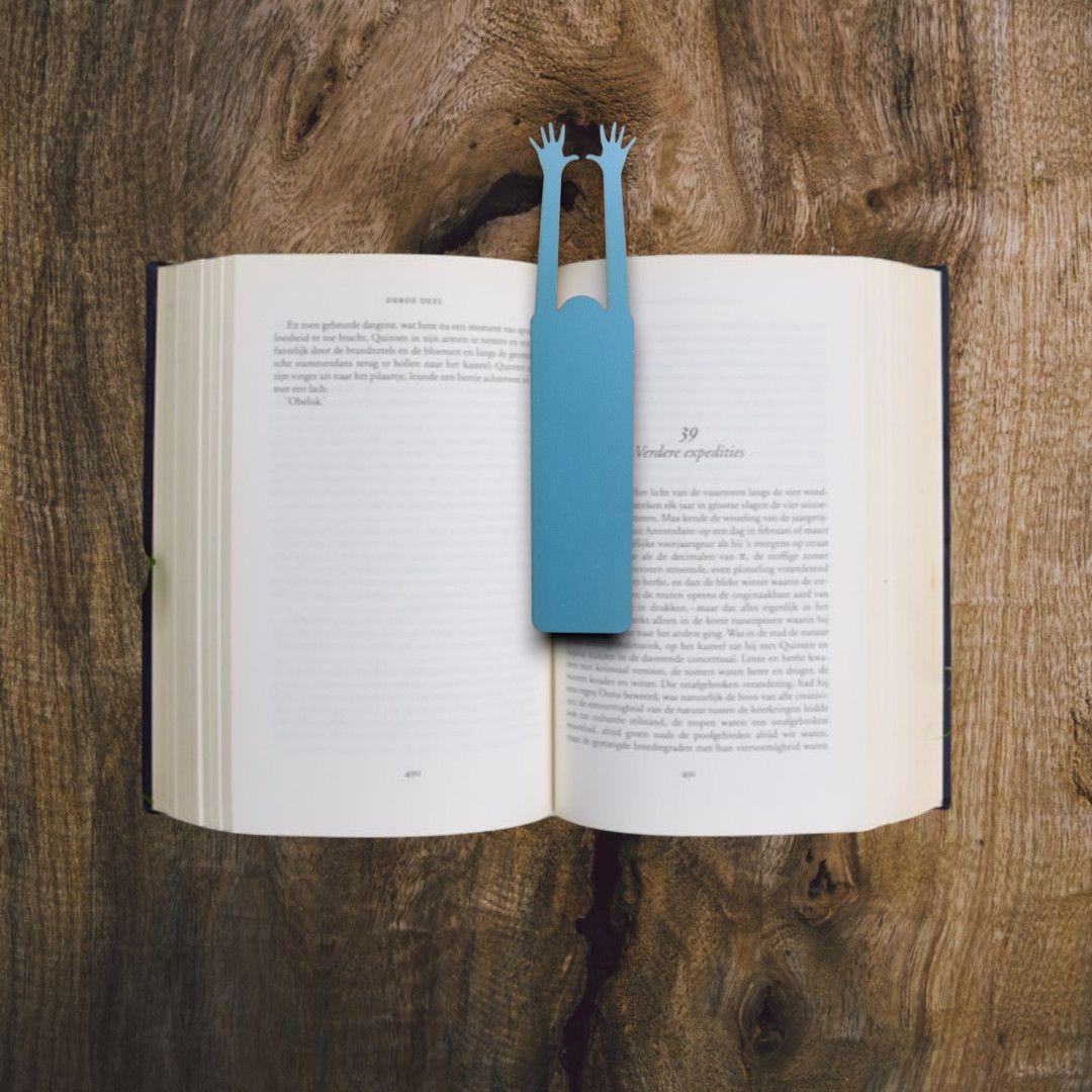 Marcador de livros em madeira reciclada, pintado com tintas à base de água – presente criativo e sustentável para leitores.