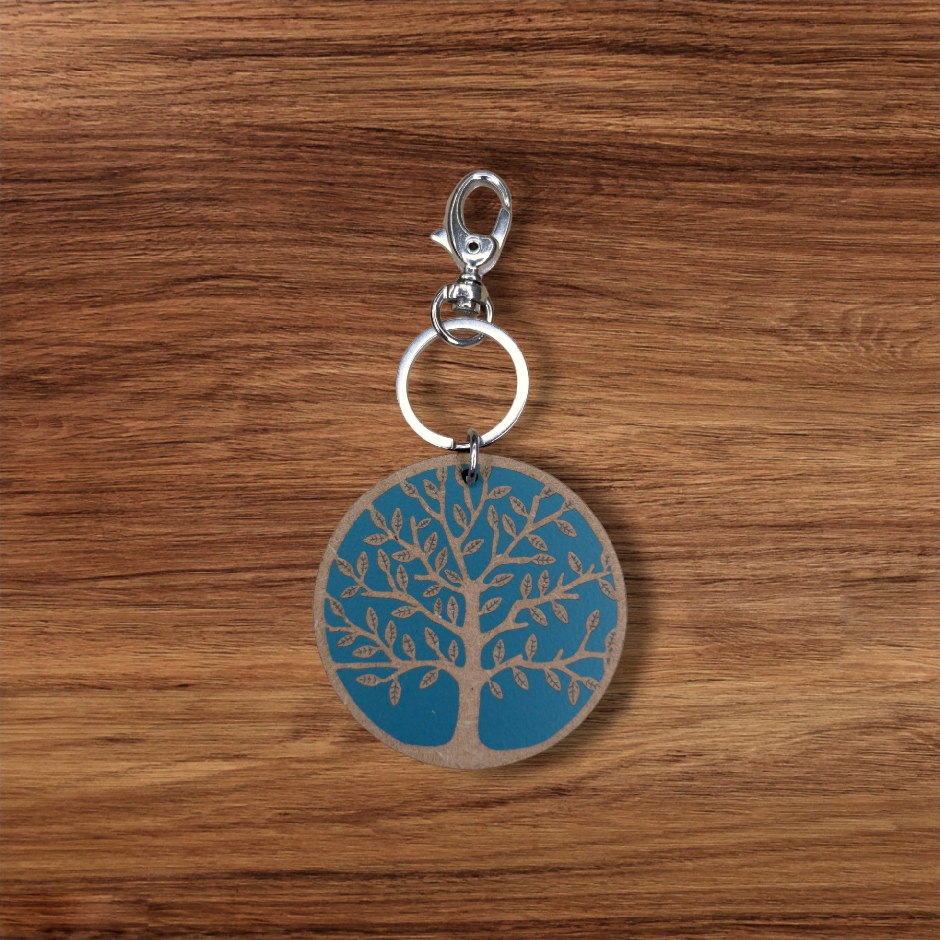 Porta-chaves em madeira gravada com a Árvore da Vida. Feito em madeira reciclada e pintado com tintas à base de água, sustentável e cheio de significado — símbolo de força e renovação.