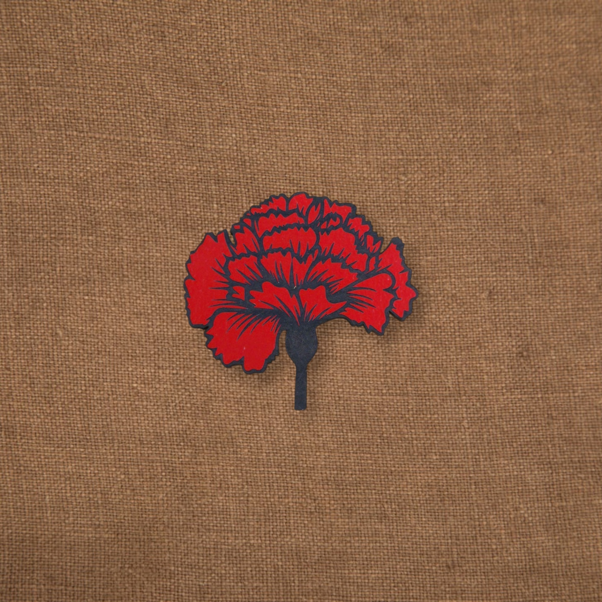 Pregadeira em forma de cravo, produzida em madeira MDF reciclada e pintada com tintas à base de água.